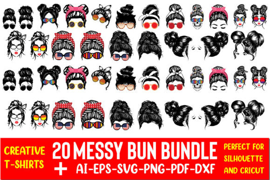 Messy Bun SVG Bundle – Tropical Plants Monstera Graphics for Crafting Projects